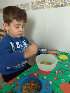 Elige el almuerzo que quieras y prepáralo con ayuda de los papis. Después coge un folio y dibuja los ingredientes que has utilizado en la receta. Con ayuda de los papis pon el nombre de los alimentos.